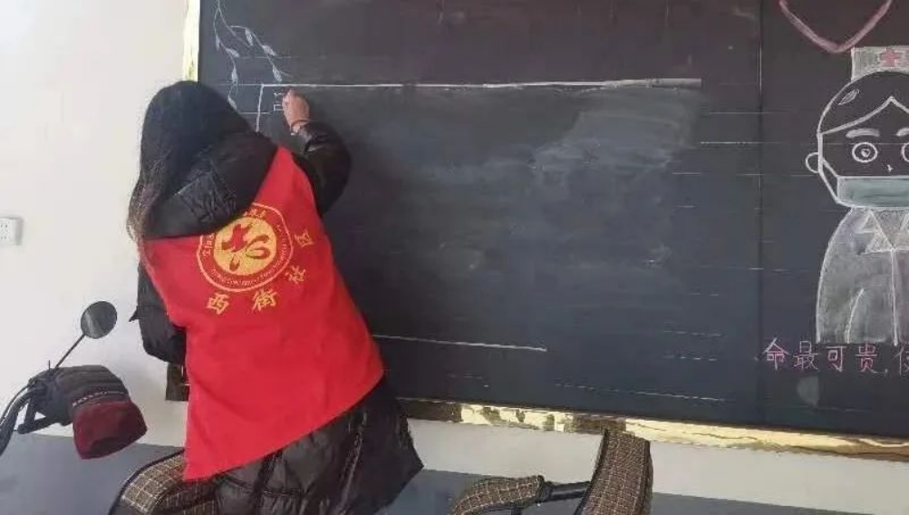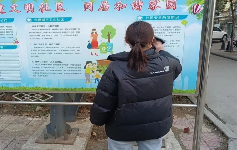 高瑜正在擦拭宣传栏。