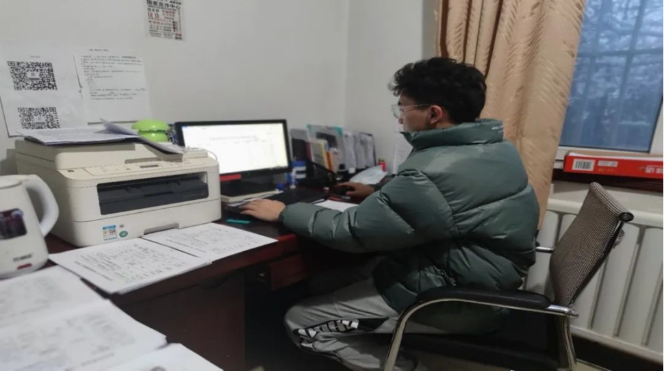 2104班胡友亮同学积极投身家乡奇台县碧流河镇塘坊门村,与驻村工作队取得联系,得知农村电采暖安装信息收集,录入,校对工作缺少人员,于是胡友亮同学协助工作队和村委会,将农户安装电采暖的实际面积,接通电源情况等信息进行了整理,为后续发放电采暖补助提供了数据。