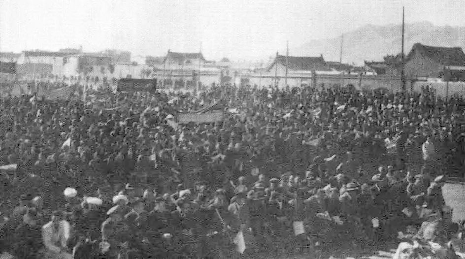 迪化(今乌鲁木齐)各族群众欢庆新疆和平解放。来源:乌鲁木齐市烈士陵园
