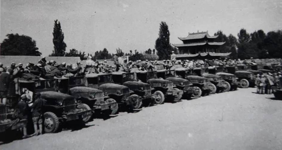 老战士张明儒在回忆录里这样描述当年的进军场面:“那是一幅何等壮观的历史画卷啊——天上飞机(苏联援助)轰隆作响,地上汽车突突奔驰,高头大马昂首嘶鸣,杆杆红旗迎风飘扬……”