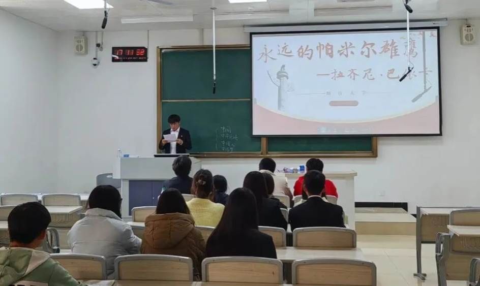 最后由社团三位指导老师为上一届优秀宣讲员颁发证书并发言,曹立中老师采用深入浅出的讲解方式为同学们讲解了拉齐尼的故事,并且将其与国家和中国梦相结合;李景惠老师和百合提妮莎·甫拉提夏老师分享的心得为同学们带来诸多启发。