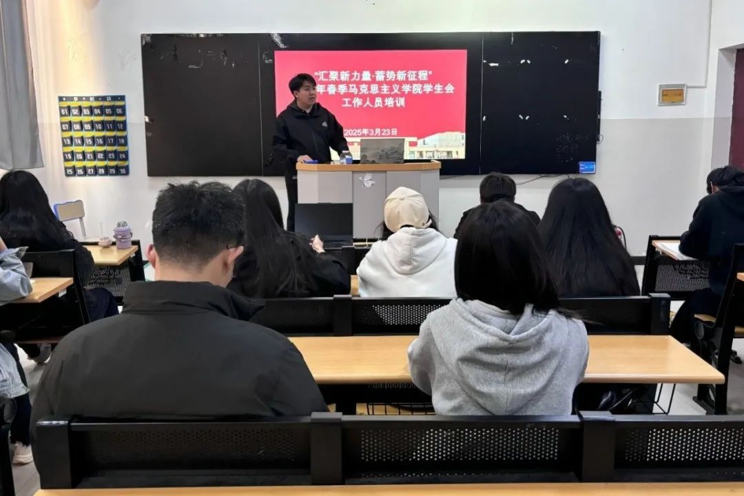 为进一步巩固马克思主义学院学生会改革成果,加强学生会工作人员理论学习、作风建设和规章制度教育,提升同学满意度、大局贡献度和社会认可度,3月23日—26日,喀什大学马克思主义学院学生会采用线上线下相结合的方式开展了“汇聚新力量 蓄势新征程”2025年春季学生会工作人员培训会,马克思主义学院团委副书记阿迪里·托乎尼亚孜老师带头领学,学院学生会负责人以及全体成员积极参加。