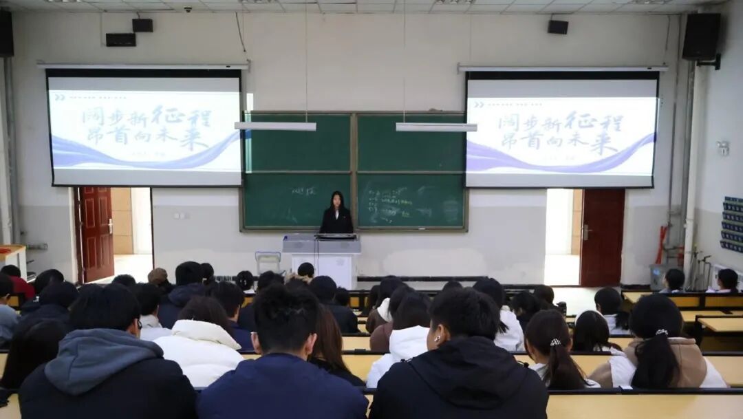 最后,优秀共青团干部张露以“阔步新征程,昂首向未来”为主题,结合统筹班级学风建设、平衡多重学生工作与学业的实战经验,深度阐释了集体发展与个人成长的双向赋能关系,她认为要在贡献力量的过程中锚定个人成长方向,在协同共进中书写青春答卷,为同学们指明了要在深耕专业学习与主动服务集体中实现双向进阶的路径。