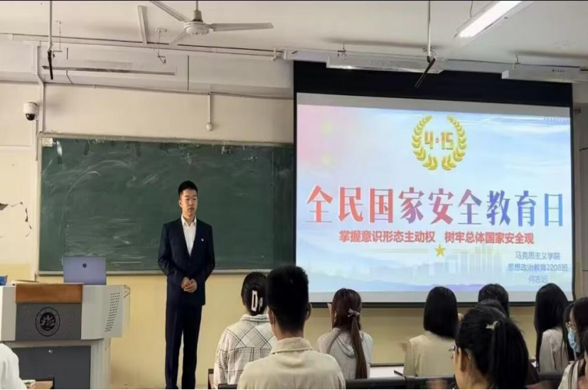 在我国第八个“4·15 全民国家安全教育日”之际,为深入学习宣传贯彻党的二十大精神,加强《国家安全法》等法律的宣传普及,提升广大学生的国家安全意识,切实推进“总体国家安全观”内化于心、外化于行。喀什大学马克思主义学院学生会举办“学思践悟党的二十大,知守辨用扬法治”国家安全日演讲比赛活动。通过演讲的形式学习宣传国家安全法律法规,切实增强广大学生国家安全意识、责任意识和防范意识。
