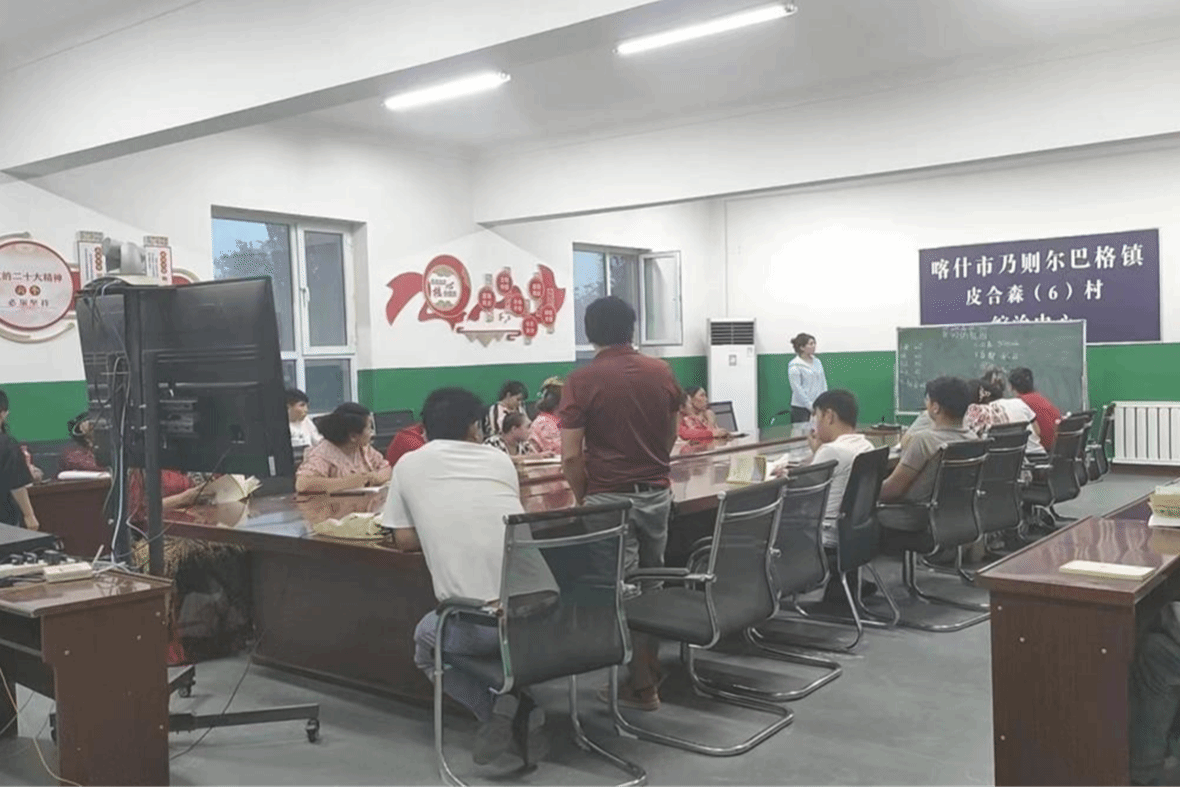 “这个假期,我想为家乡做一些有意义且有成果的事情。”怀着这样的初衷,阿依先姆古丽·努尔麦麦提积极响应院团委的号召,投身于家乡夜校国语培训活动之中。返乡后,阿依先姆古丽·努尔麦麦提走进了喀什市乃镇皮和森(6)村的夜校小讲堂,以饱满的热情和专业的态度,承担起语言基础课程的教学任务,她耐心细致地讲解汉字发音、语法结构,引导村民们通过跟读、对话等互动方式,逐步掌握国语的基本运用能力。