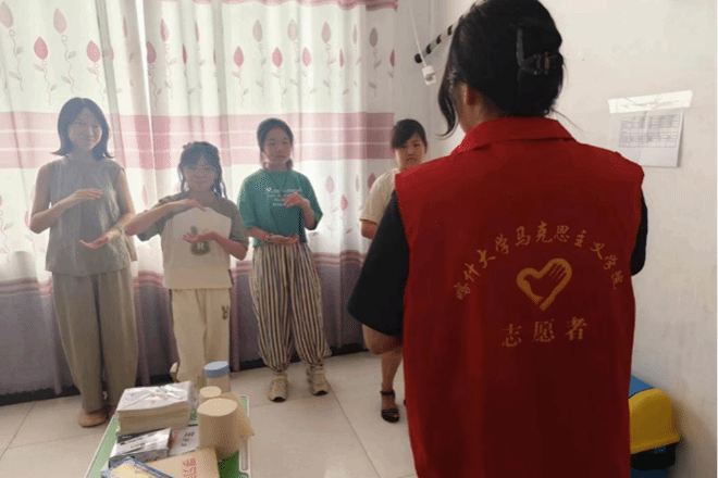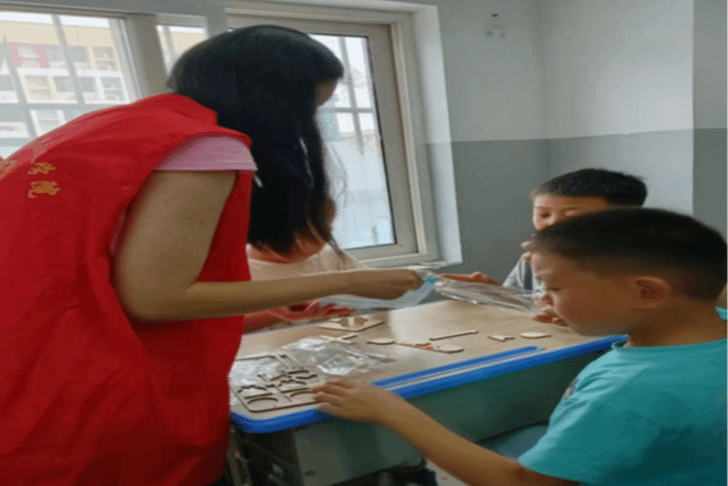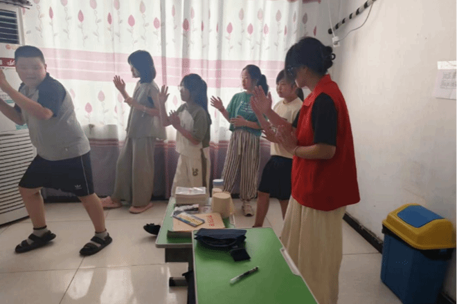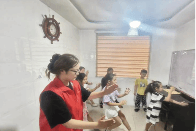 2303班的王彤芸同学在山东省德州市德城区文庄村,帮助孩子们对所学知识进行复习巩固。她凭借高度的责任心与卓越的专业能力,对孩子们的作业进行了细致入微的辅导。同时,为增强教学效果,营造寓教于乐的学习环境,使孩子们在愉悦中吸收新知,她还组织了打太极拳、跳新疆舞等趣味活动,便于拓宽孩子们的视野并提高学习兴趣。