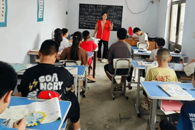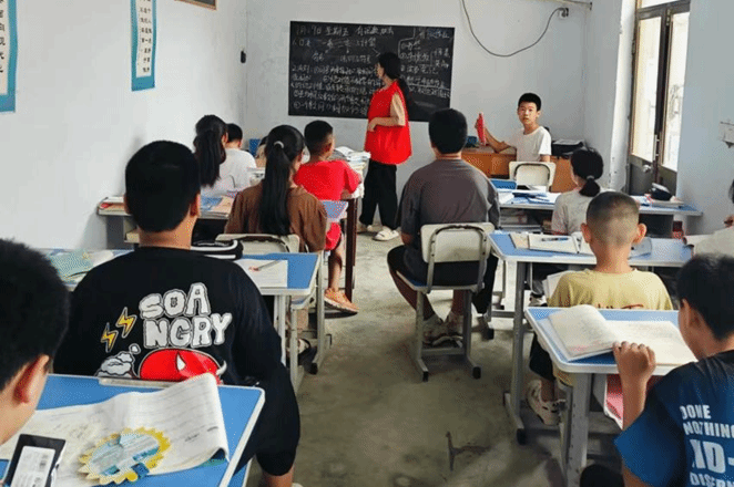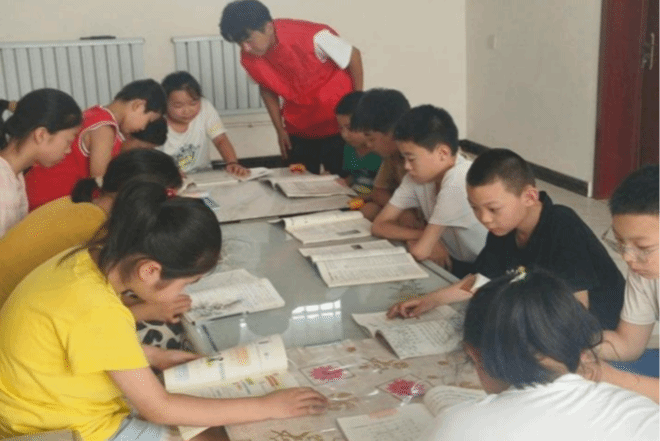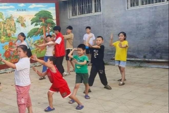 在山东省聊城市冠县王羡中村,2303班的贾振轲同学认真监督孩子们完成暑期作业,并耐心讲解难题。课余时间,他还教授孩子们打太极活动,加深青少年对中华优秀传统文化的理解与热爱,激发他们的文化自信。