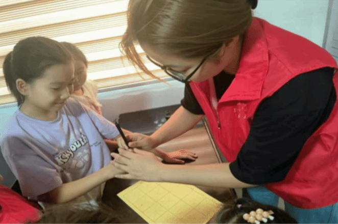 2303班的刘春蕾同学结合喀什大学“五个人人”系列活动,在山东省德州市乐陵市杨安镇崔刘社区开展了“书写红色传奇”书法课程,培养小学生良好的书写习惯;开设“石榴花开,舞动中国”舞蹈课、“红色歌曲颂党恩”音乐课等,另外还开展了防火、防骗、防溺水等主题教育活动,全面提升青少年儿童的综合素质。