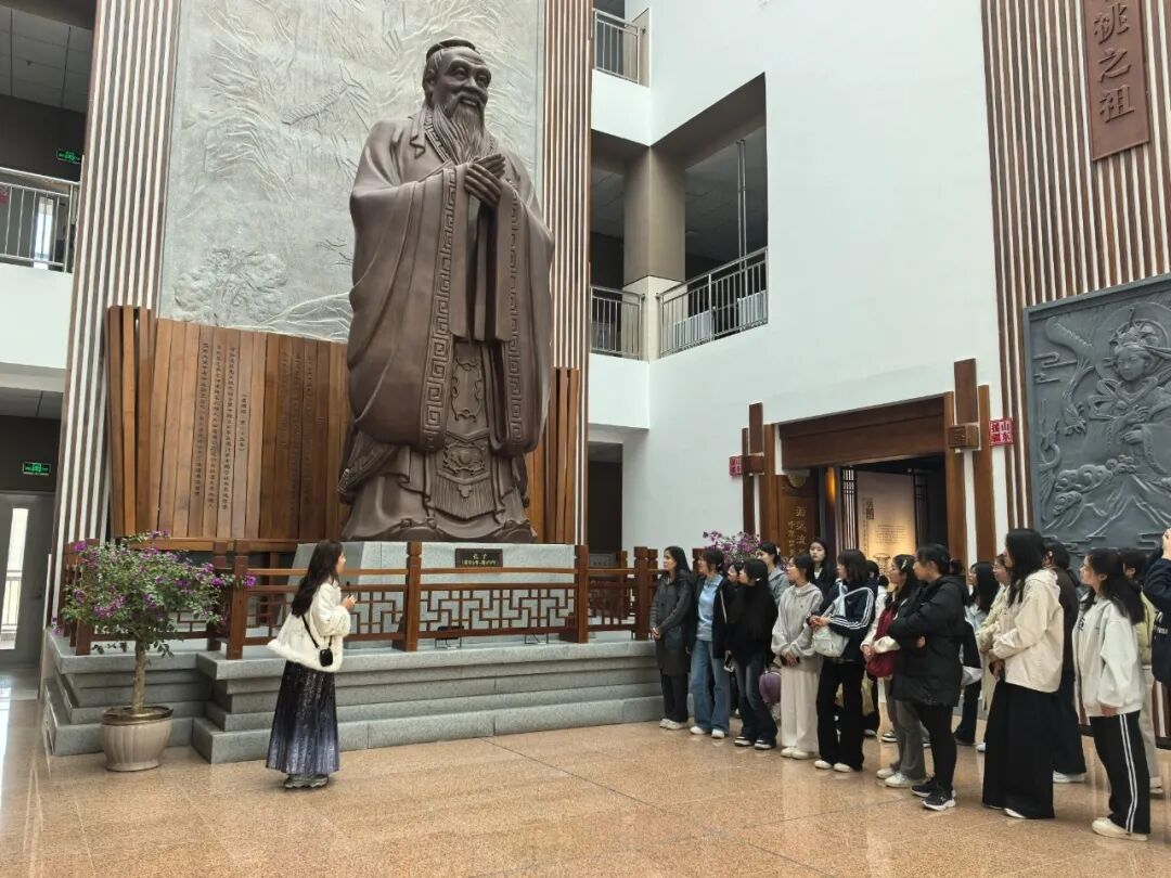 本次活动打破了思政教育的传统边界,构建了“思政+生态、文化”的多元育人共同体。在动植物标本馆,同学们观赏馆内种类繁多、制作精美的动植物标本,从珍稀的鸟类、昆虫到形态各异的植物,不仅激发科学兴趣,更潜移默化地传递“人与自然和谐共生”的生态文明理念,拓宽思政教育的生态维度,上好一堂“自然生态课”。在国学院,巨型孔子像庄严肃穆,讲解员以时间为轴,讲述孔子周游列国传扬思想、整理典籍传承文明的生平,从“仁者爱人”的处世哲学到“因材施教”的教育智慧,深刻领悟中华优秀传统文化同马克思主义基本原理的“精神”契合,上好一堂“文化育人课”。