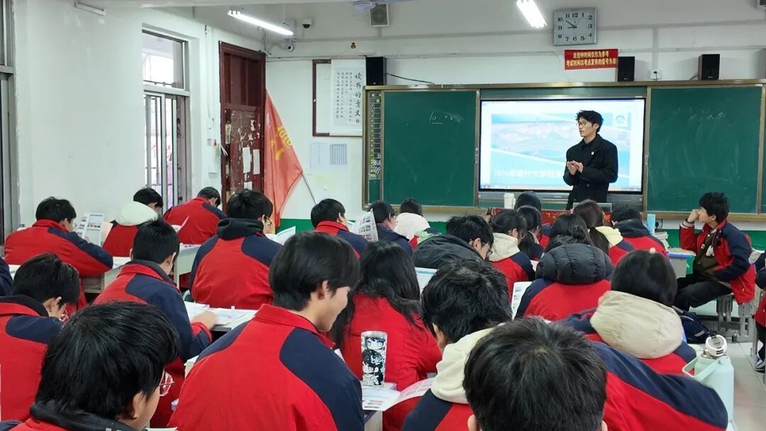 为搭建高等院校与高中教育衔接桥梁,传递喀什大学办学特色与新疆发展魅力,助力高三学子尽快明确升学方向。2026年1月16日,由喀什大学马克思主义学院思想政治教育2501班杜文哲、2306班李想、2306班薛玉、2405班李汶潼等四位学子组成的小团队,怀着对母校的深厚情谊重返河南省驻马店市确山县第二高级中学,面向高二年级全体学生开展主题宣传活动。活动以政策解读、文化分享、互动答疑为核心,内容详实、形式新颖,获得师生广泛好评。
