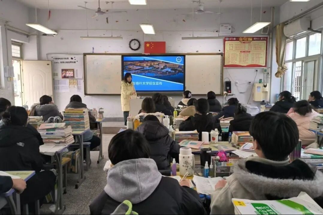 为构建内地高中教育与新疆高等教育协同育人体系,精准传递喀什大学“扎根边疆、服务国家、面向未来”的办学定位,全面展现学校在学科建设、人才培养、战略区位等方面的核心竞争力,吸引更多优秀学子投身西部建设、助力区域协同发展,喀什大学马克思主义学院思想政治教育2505班学生侯晴旸携团队成员王聪、2502班学生王一帆、2304班学生李思梦、安静和2401班学生梁锦卓,各自重返高中母校,通过沉浸式视觉体验、专业化政策解读、个性化成长指导,为奋战高考的学弟学妹们搭建起升学桥梁,实现大学宣传与育人实践的深度融合。