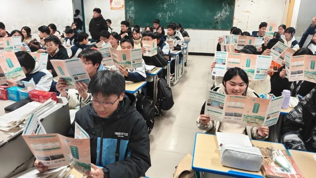 曾德玉结合精心准备的PPT与折页,全方位、多角度介绍喀什大学的优势与特色。从区位优势切入,详细讲解喀什作为祖国西大门的地理重要性,让同学们了解喀什便利的交通条件、完善的生活配套与蓬勃的发展活力;在办学实力方面,通过详实的数据和清晰的图表,展示学校“一校三区”的办学格局、完整的人才培养体系、一流本科专业与服务“一带一路”的新兴学科布局,凸显“以理工农医为主体、师范教育为特色”的办学优势;同时,分享了学校的联合培养项目、推免升学渠道、产教创融合基地建设,以及丰富多彩的“五个人人”校园文化活动与舒适便捷的生活设施,让同学们全面感受喀大的学习氛围、育人特色与发展潜力,真切体会边疆求学的独特价值。